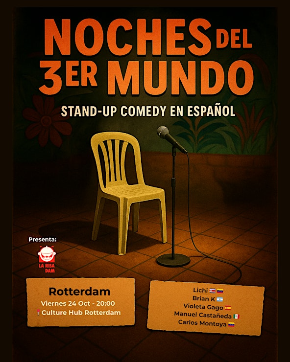 ¡Ven a disfrutar de una noche llena de risas y diversión con los mejores comediantes de habla hispana en Rotterdam! Noches del 3er Mundo - Stand-up Comedy en Español - Rotterdam Descripción del evento: El 3er mundo, ese lugar que nadie sabe donde queda pero que todos llevamos dentro. Ese lugar de prácticas curiosas que… Read More »Spanish Comedy Night (in spanish)